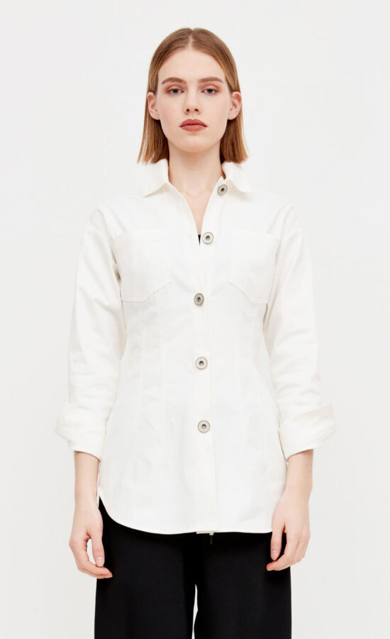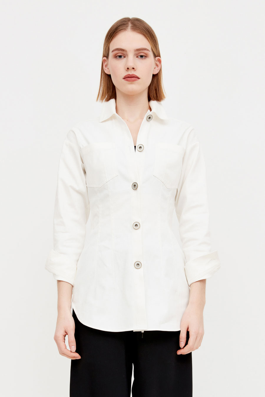 Блуза женская прилегающего силуэта, длинной ниже линии бедер.