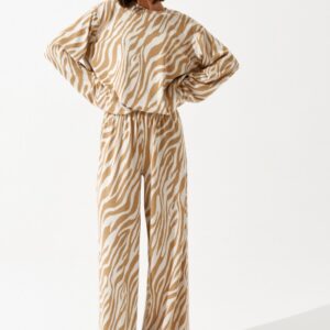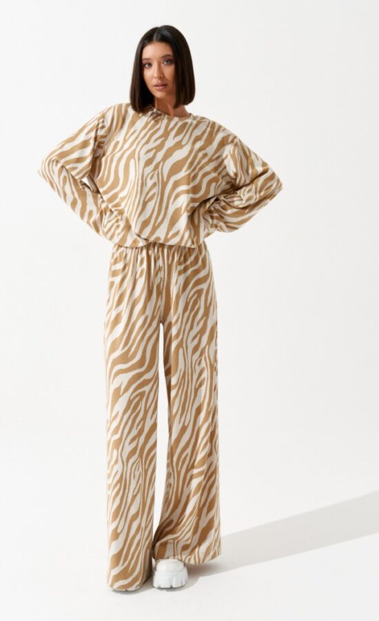 Брюки прямого кроя выполнены из трикотажного легкого полотна.