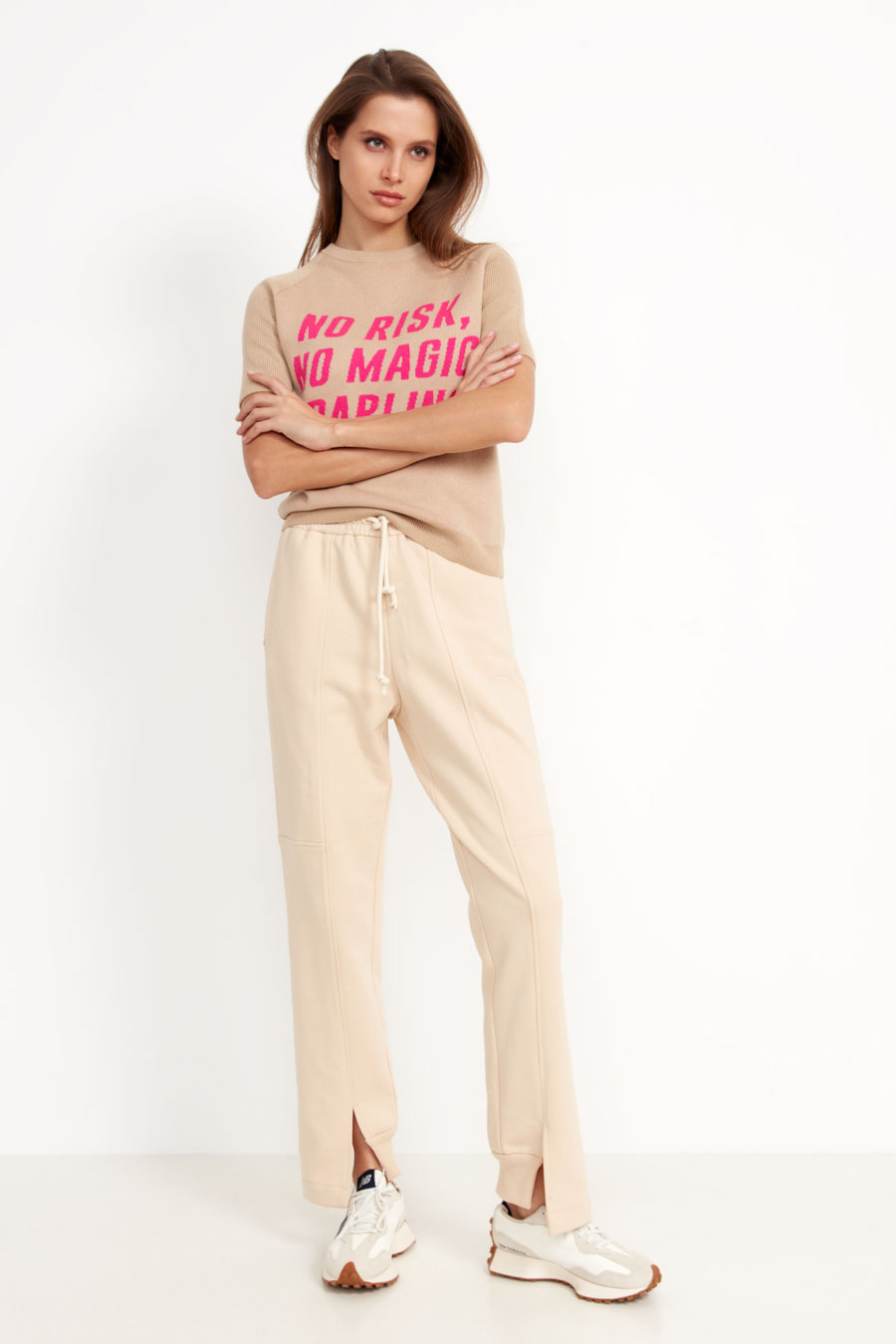 Гладить слегка нагретым утюгом при температуре до 120 °С (нейлон, капрон, вискоза, полиакрил, полиамид, ацетат)