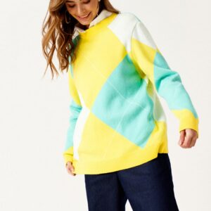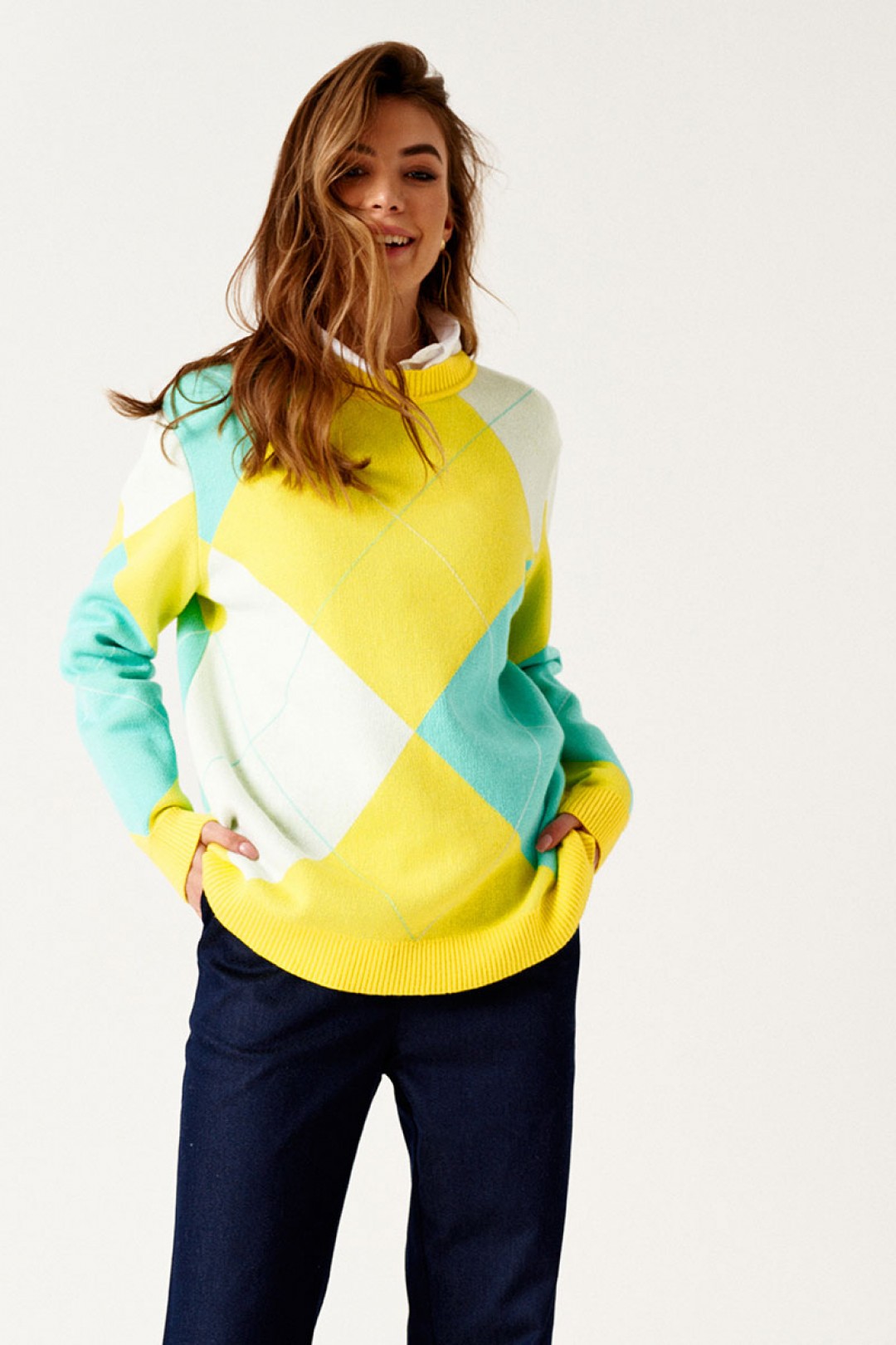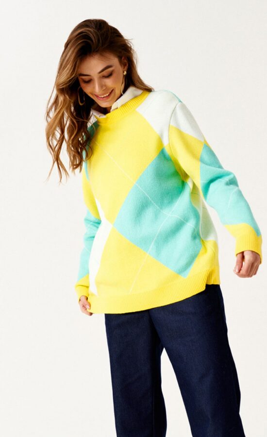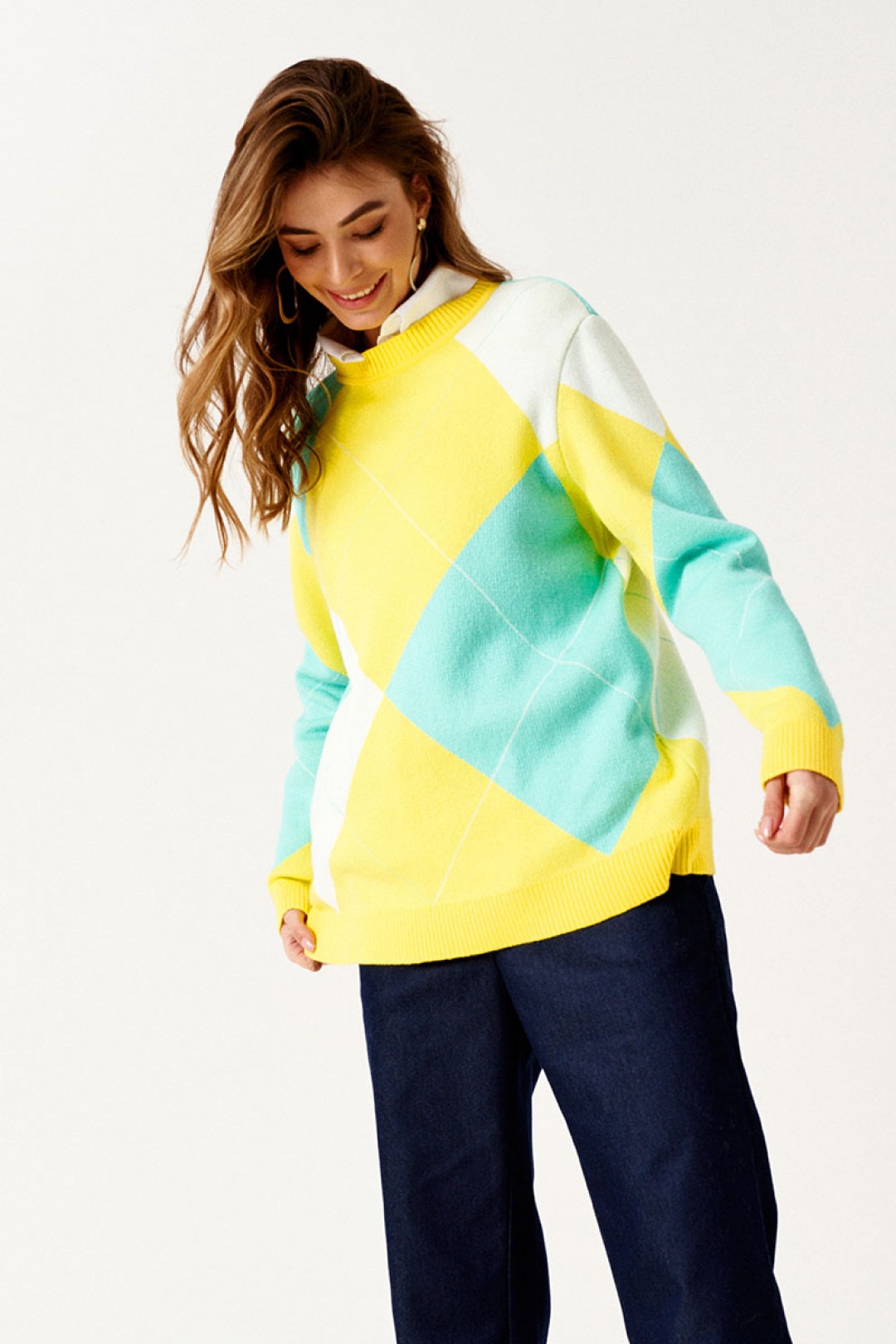 Джемпер женский, вязаный, длиной ниже линии бедер. Вырез горловины овальный. Рукав длинный, втачной.