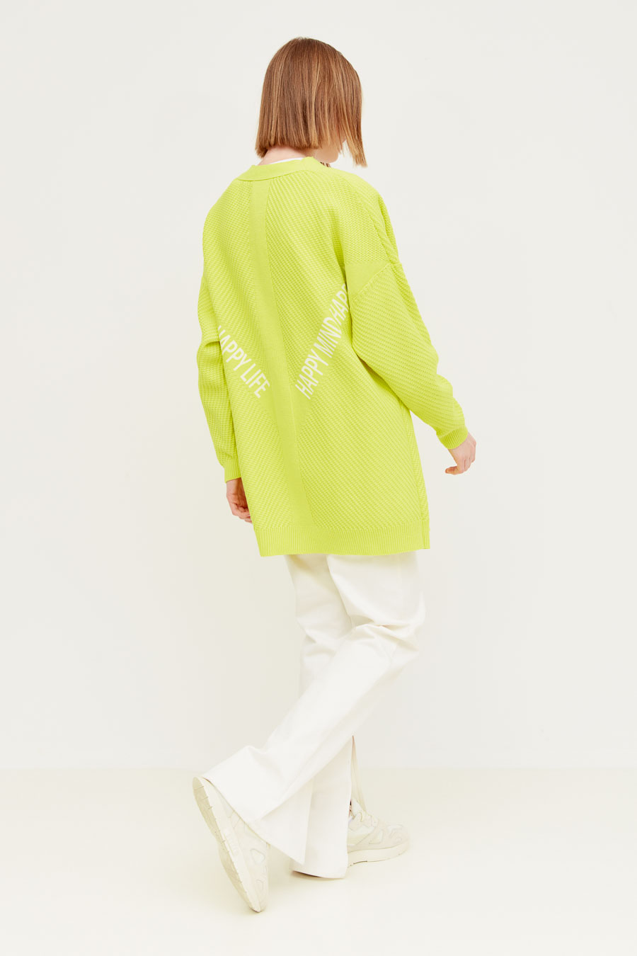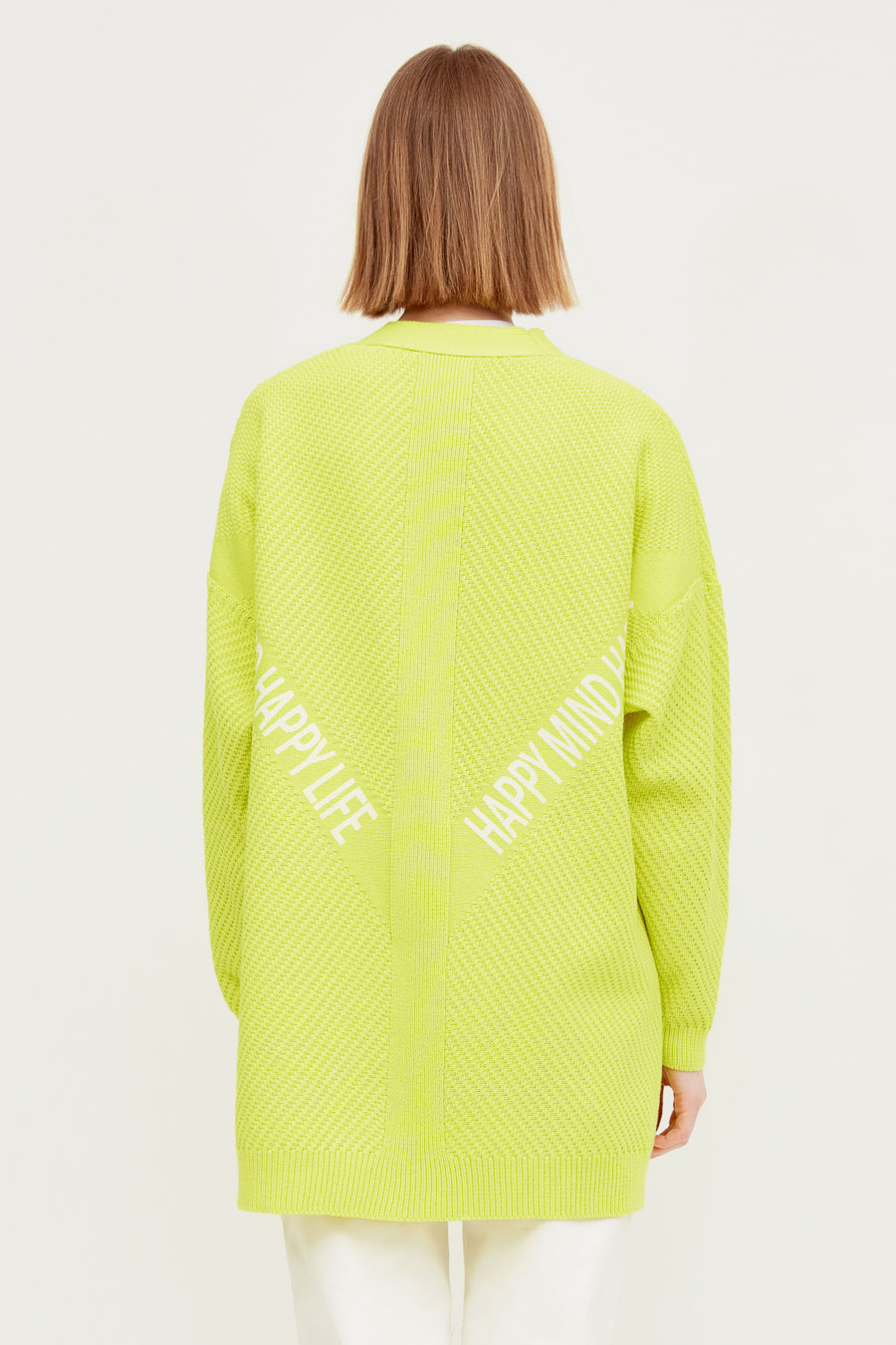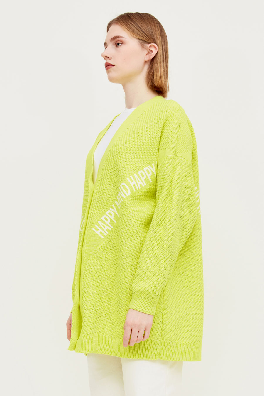 Кардиган вязаный женский прямого кроя, длинной ниже линии бедер.