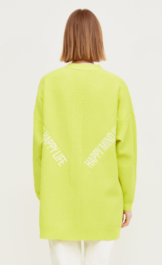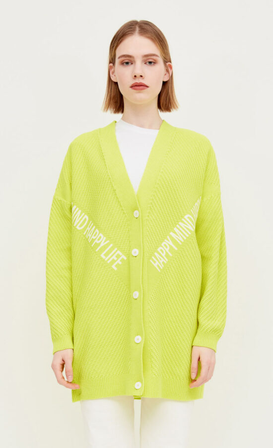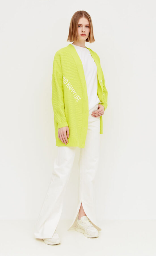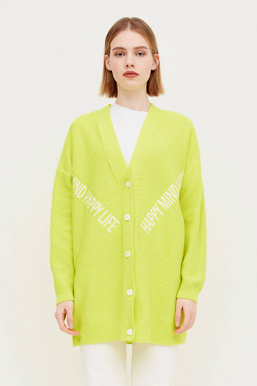 Кардиган вязаный женский прямого кроя, длинной ниже линии бедер.