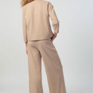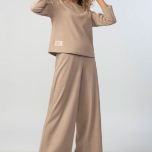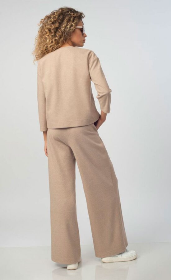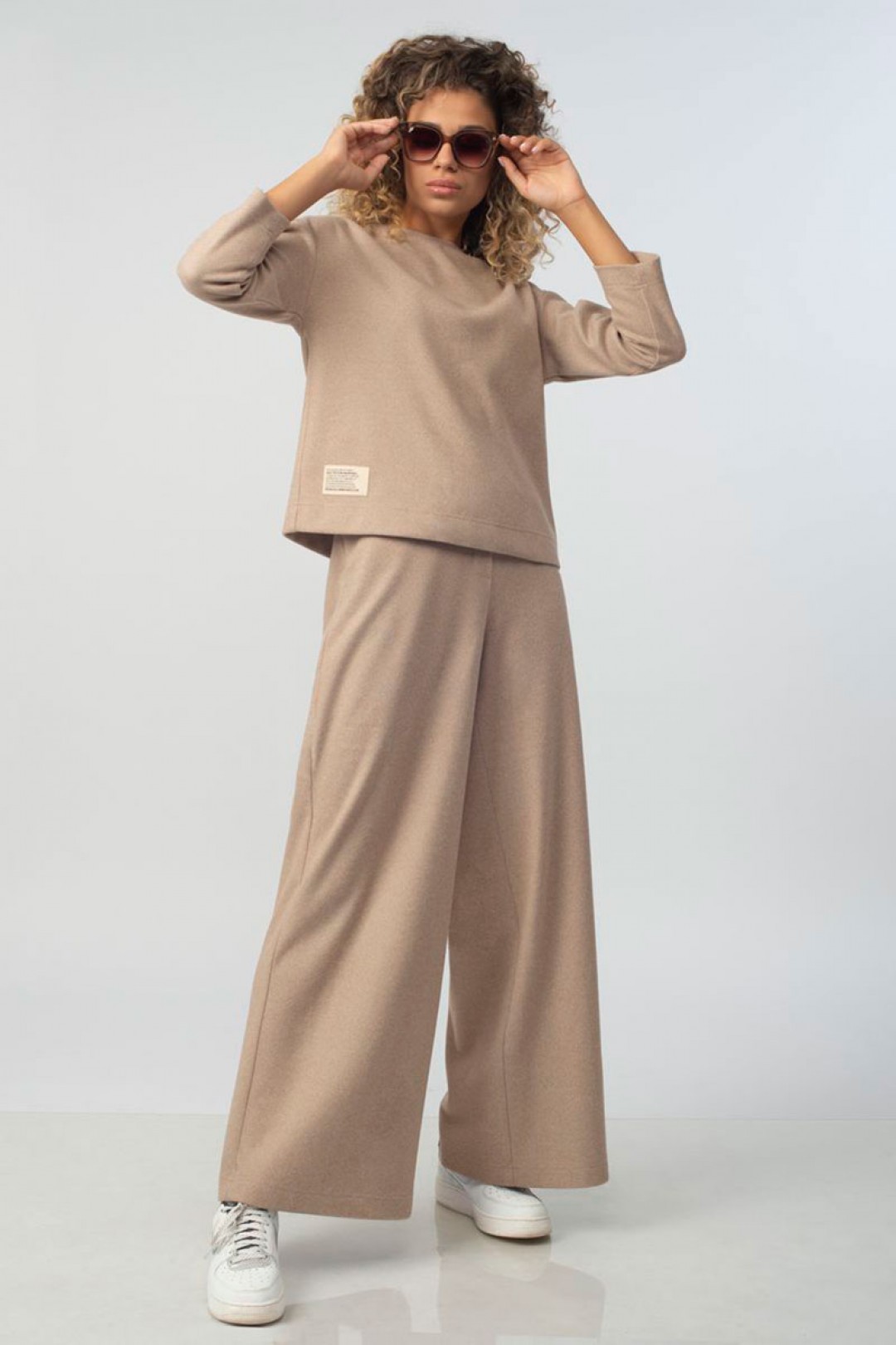 Джемпер свободного силуэта. Линия плеча спущена, рукав длиной 3/4. Горловина круглой формы, обработана притачной планкой. На полочке снизу нашивка.