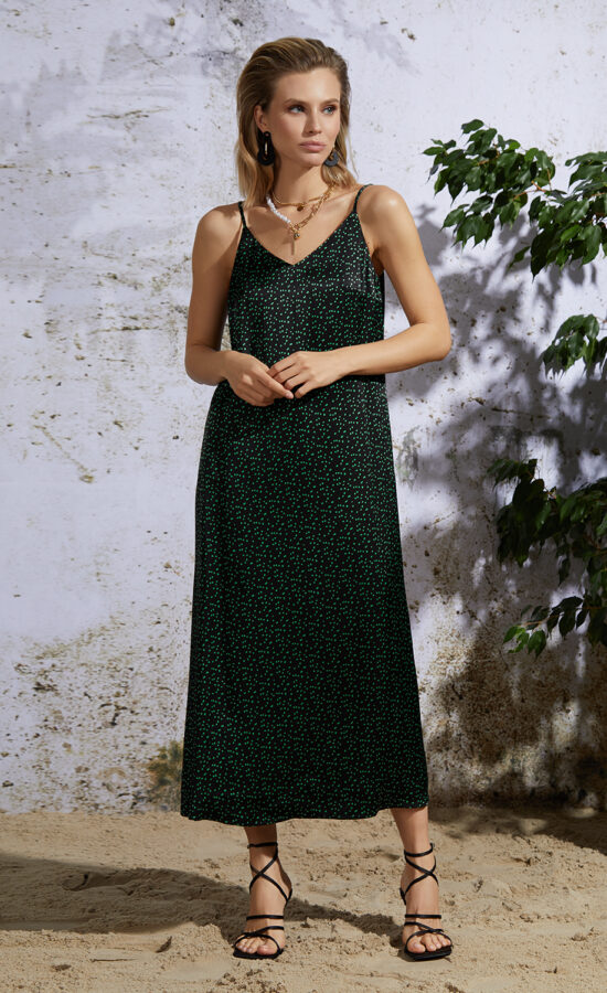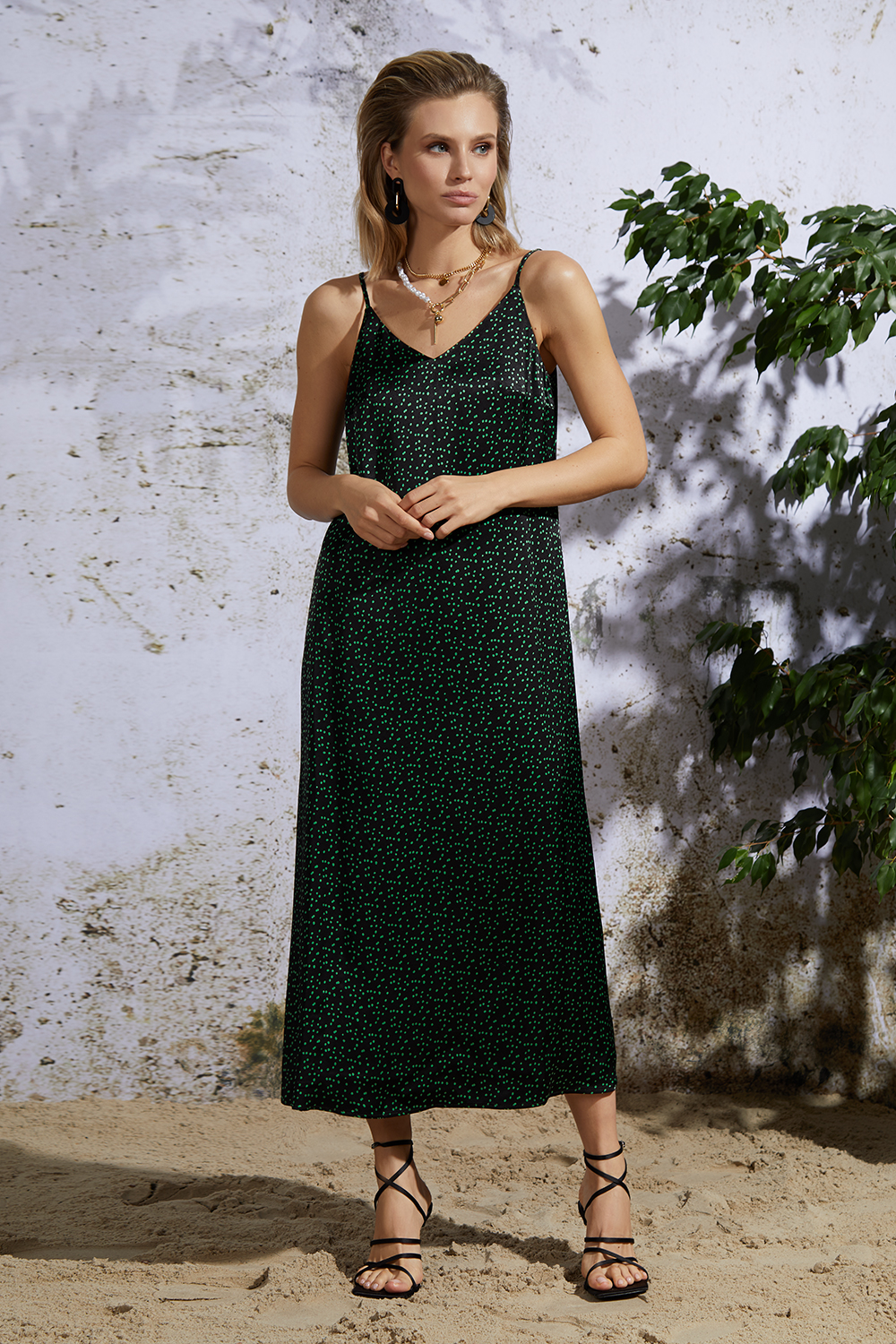 Стильное платье-комбинация, выполнено из плотной струящейся вискозы. Платье полностью на подкладке. Подклад- 100% вискоза. Изделие регулируется по фигуре за счет шлеек. Платье “садится” на любой рост. Великолепный вариант, как самостоятельное изделия на выход, так и под объемный джемпер для повседневной носки.рекрасно дополняют образ в сочетании со свободным жакетом в стиле Casual.