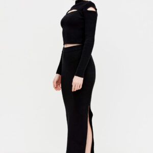 По левому боковому шву разрез, который придает образу романтичности и чувственноcти.